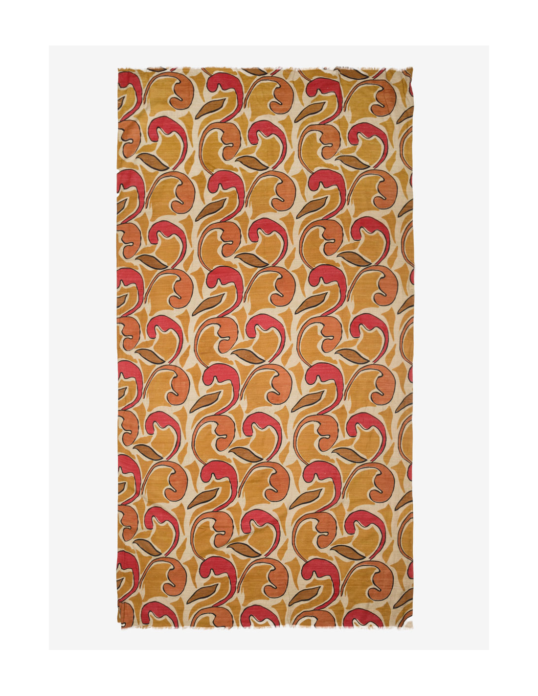 Foulard realizado en una mezcla de algodón y seda con estampado inspirado en motivos étnicos.